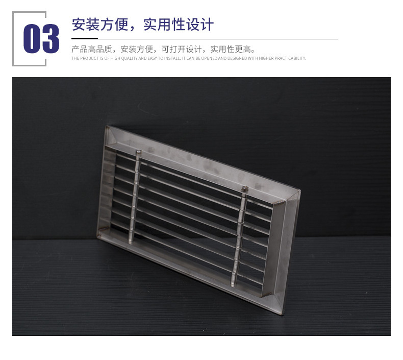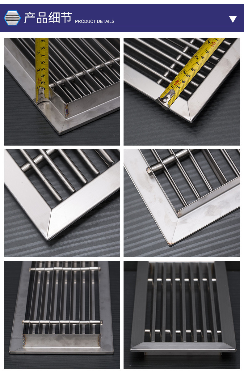 不銹鋼風口通常也是指空調的回風口,一般來說它的后面都會帶著過濾網,不銹鋼風口表面還會有黑色的灰塵積在角落里,很容易區分出風口是空調系統中送風用的,一般它的后面不會帶過濾網,表面會很干凈,送冷風時可能還會有冷凝水積聚在上面;不銹鋼風口通常也是指空調的回風口,一般來說它的后面都會帶著過濾網,不銹鋼風口表面還會有黑色的灰塵積在角落里,很容易區分;新不銹鋼風口是用風機把外面的自然風直接送到所需區域,一般也帶著過濾網;出風口一般為方形散流器,呈方形多層可拆卸,一般用防火帆布連接;送冷風時水珠掛在上面!有回風口多呈長方形,有稱單(雙)層百葉風口,并帶有過濾網;主要作用在于把污濁的空氣吸回去。新不銹鋼風口則較小,每個房間貼墻安裝或是于送風口呈直線的必是新風口無疑!